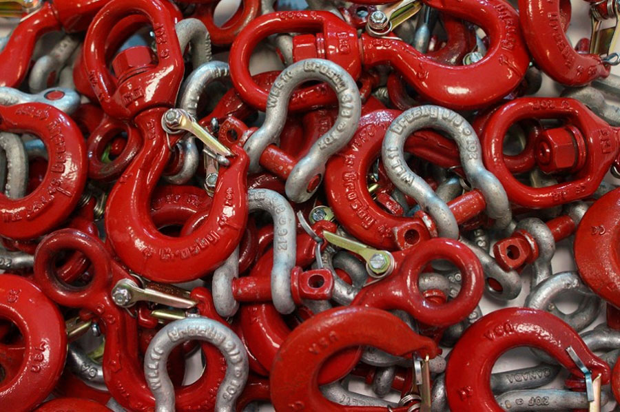 Todos los accesorios para la carga, sujeción e izaje. Ganchos, grilletes, grampas prensacables, tensores, mosquetones, guardacabos, pastecas y más.