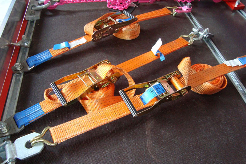 Las cintas poseen una gran superficie de apoyo, con lo cual la carga se mantiene perfectamente sujeta. La confiabilidad de este sistema es muy superior a la de los convencionales, puesto que la tensión se aplica mediante criques o malacates especialmente diseñados para una tracción pareja, adecuada a las necesidades del transportista.