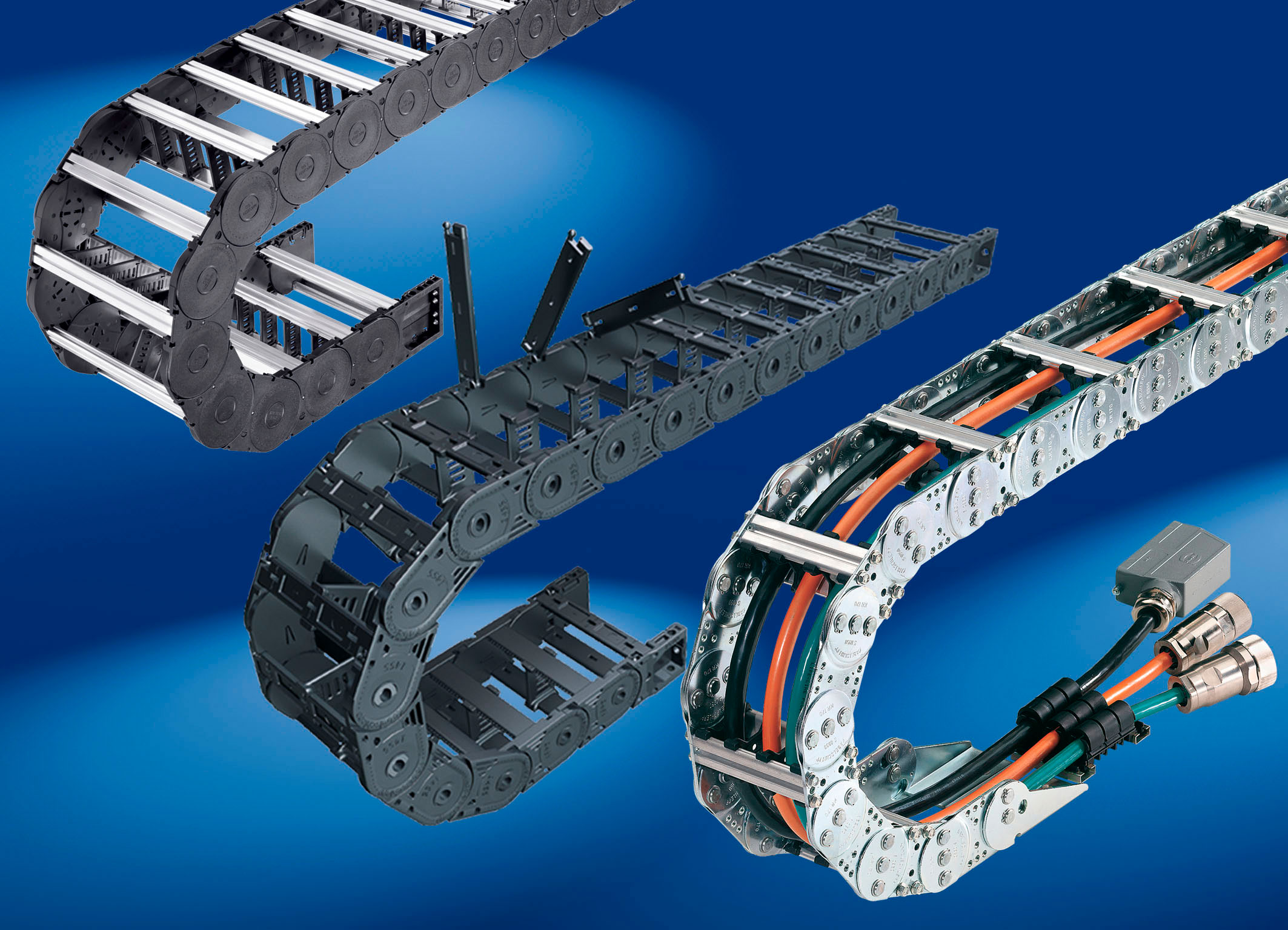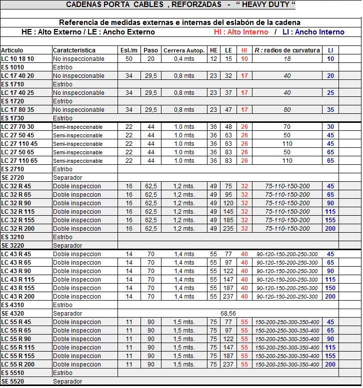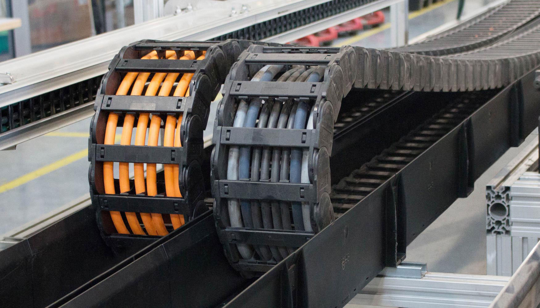Especialmente diseñadas para equipamientos que poseen movimiento y trasladan algún tipo de cable o manguera. Su uso permite trasladarlos de manera segura y eficiente.