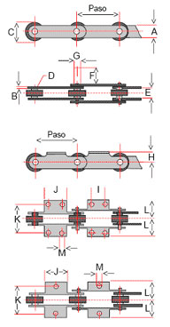 Denominadas de paso alargado por poseer una mayor relación entre ancho y paso; este tipo de cadena es uno de los más usados y económicos para sistemas transportadores y elevadores de toda clase.